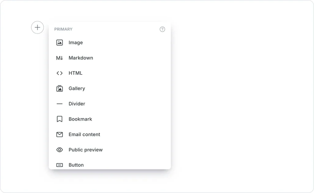 Blocks in Ghost are called cards. You have a wide range of cards to help create dynamic content that makes your emails and blog posts more beautiful and high converting.