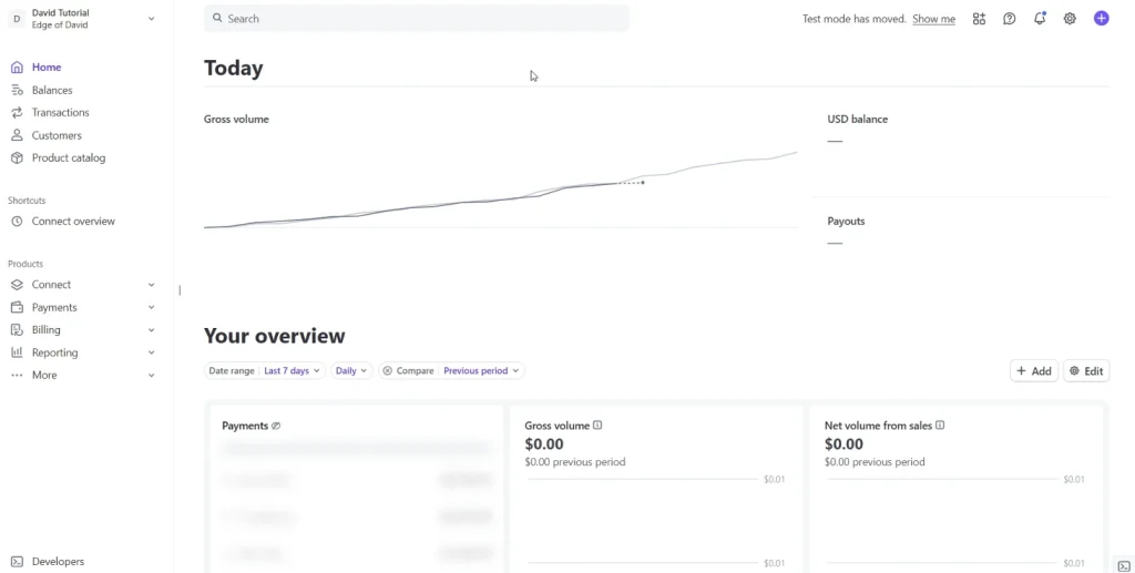 Once you go through the process of signing up to Stripe and creating your account, you’ll be looking at the dashboard.