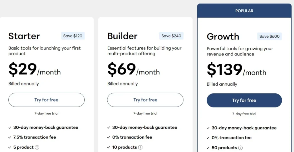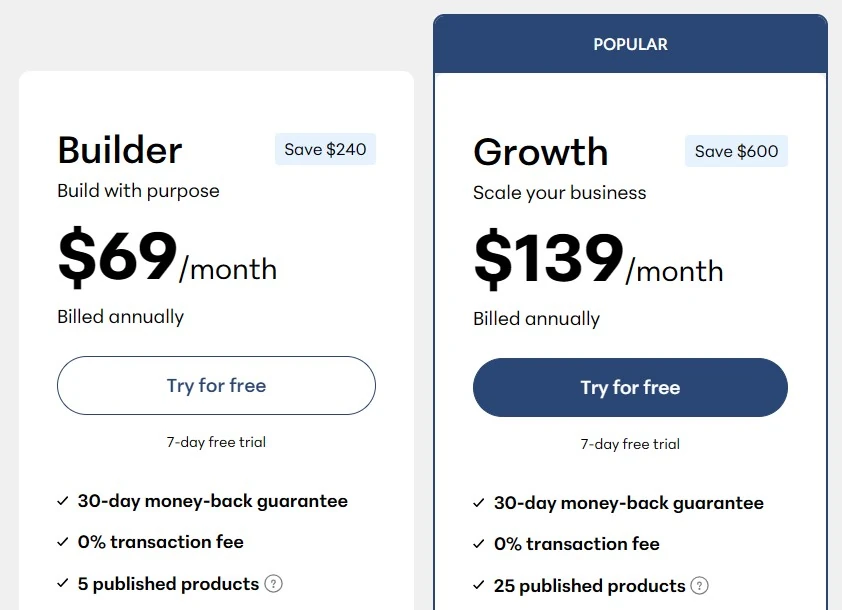 $139 growth plan, you may as well use Kajabi and get a nice combination of email marketing funnels, a website, sales pages, blog, and courses with great checkout pages.