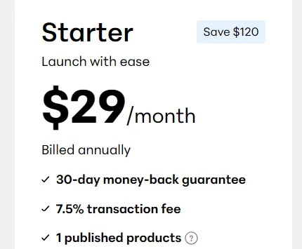 Their lowest tier which they charge $29 a month for, only allowed you to sell one, ONE product. On top of that you have to also pay them an additional 7.5% transaction fee.