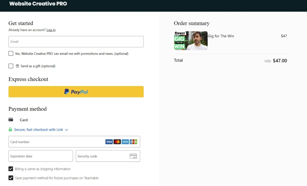The checkout page is not something you pay much attention to if you’ve never sold anything online, but having a well designed checkout page is quite important and Teachable does this well.